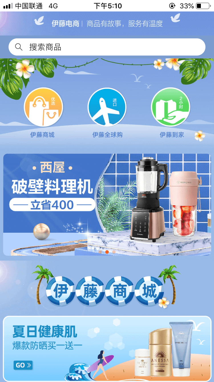别具一格的设计风格,主题场景购,早晚市限时购,传承伊藤早晚市,更有母婴馆、居家馆、食品馆等多种主题场景,让用户有全新的购物体验。